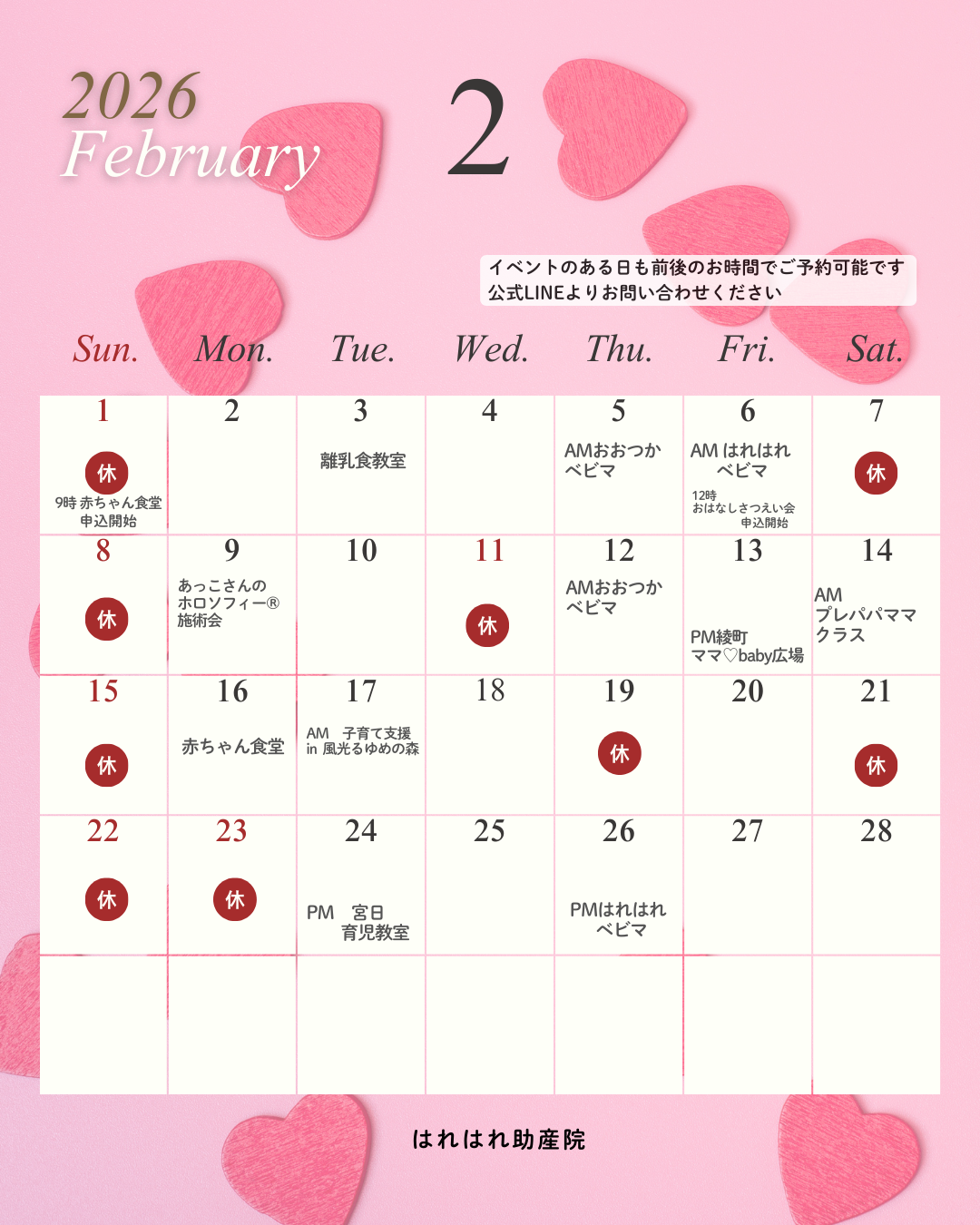 2025/12/31 1月のスケジュール、イベントの詳しい内容は当院Instagramをご覧ください。